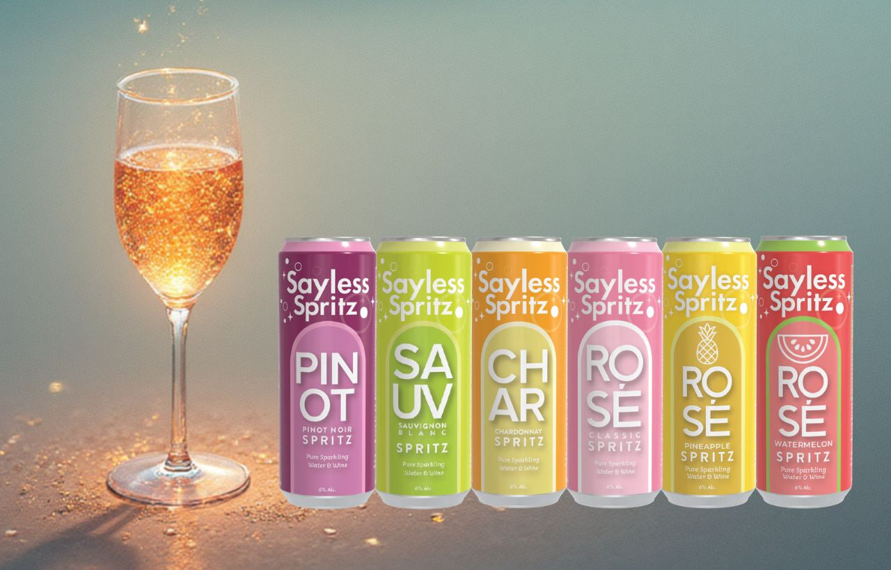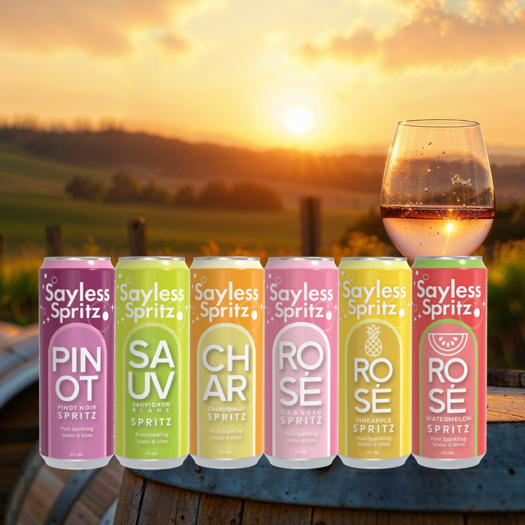 Sayless Spritz is born out of a love for both wine and the vibrant, active lifestyle of our fellow Americans. We're proud to offer a range of spritzers that blend pure sparkling water with carefully sourced wine, maintaining a crisp and invigorating taste at a refreshing 6% ABV. Our commitment to sourcing from American vineyards not only ensures the highest quality but also supports local growers and sustainable practices.